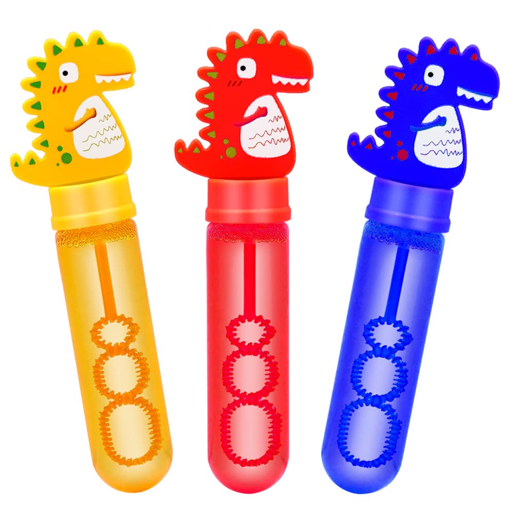 Vkten 3pcs Dinosaur Bubble Wands Mini Bubbles Party Favors For Kids Themed Birthday Bath Time Halloween